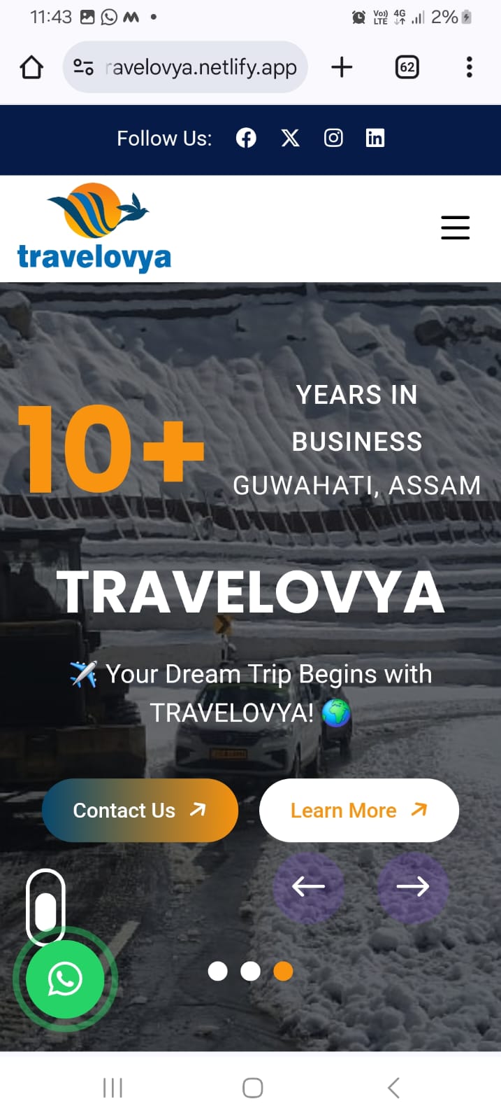 Travelovya is your trusted partner for exploring the hidden gems of Northeast India. We create unforgettable experiences in Assam, Meghalaya, and Arunachal Pradesh.